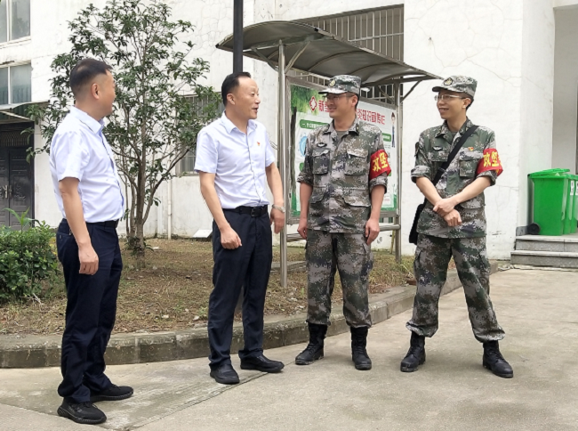 在部隊駐扎地安職院,何族興一行詳細(xì)了解了部隊官兵的駐地環(huán)境、食宿安排等方面情況,并送去換洗衣物、飲用水、防蚊及防暑用品等價值近3萬元的生活物資。