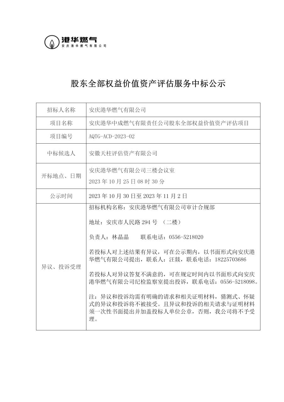 股東全部權(quán)益價(jià)值資產(chǎn)評(píng)估服務(wù)中標(biāo)公示