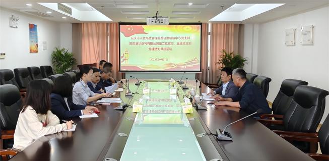 雙方黨員代表共同學習了習近平總書記關于完善覆蓋全民社會保障體系的重要講話以及習近平總書記對燃氣安全工作的重要指示批示,觀看安慶港華宣傳片,學習社會保險有關政策,相互交流學習基層黨建工作中的先進經驗做法。