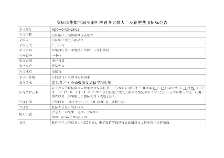 安慶港華加氣站壓縮機(jī)大修項(xiàng)目招標(biāo)公告