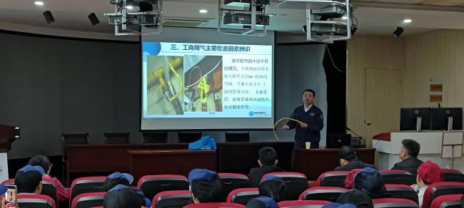 為進(jìn)一步加強(qiáng)工商用戶安全用氣意識,提升突發(fā)事故的應(yīng)急處置能力,有效預(yù)防和遏制燃?xì)獍踩鹿实陌l(fā)生。3月27日下午,應(yīng)安慶師范大學(xué)基建與后勤管理處邀請,公司燃?xì)獍踩嘤?xùn)講師來到安慶師范大學(xué)龍山校區(qū)開展燃?xì)獍踩嘤?xùn)。校內(nèi)工商燃?xì)庥脩?、學(xué)校后勤處管理人員約50人參加培訓(xùn)。