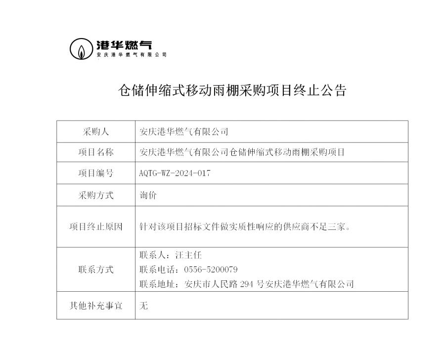 安慶港華燃?xì)庥邢薰居布阑饓?xiàng)目詢價結(jié)...