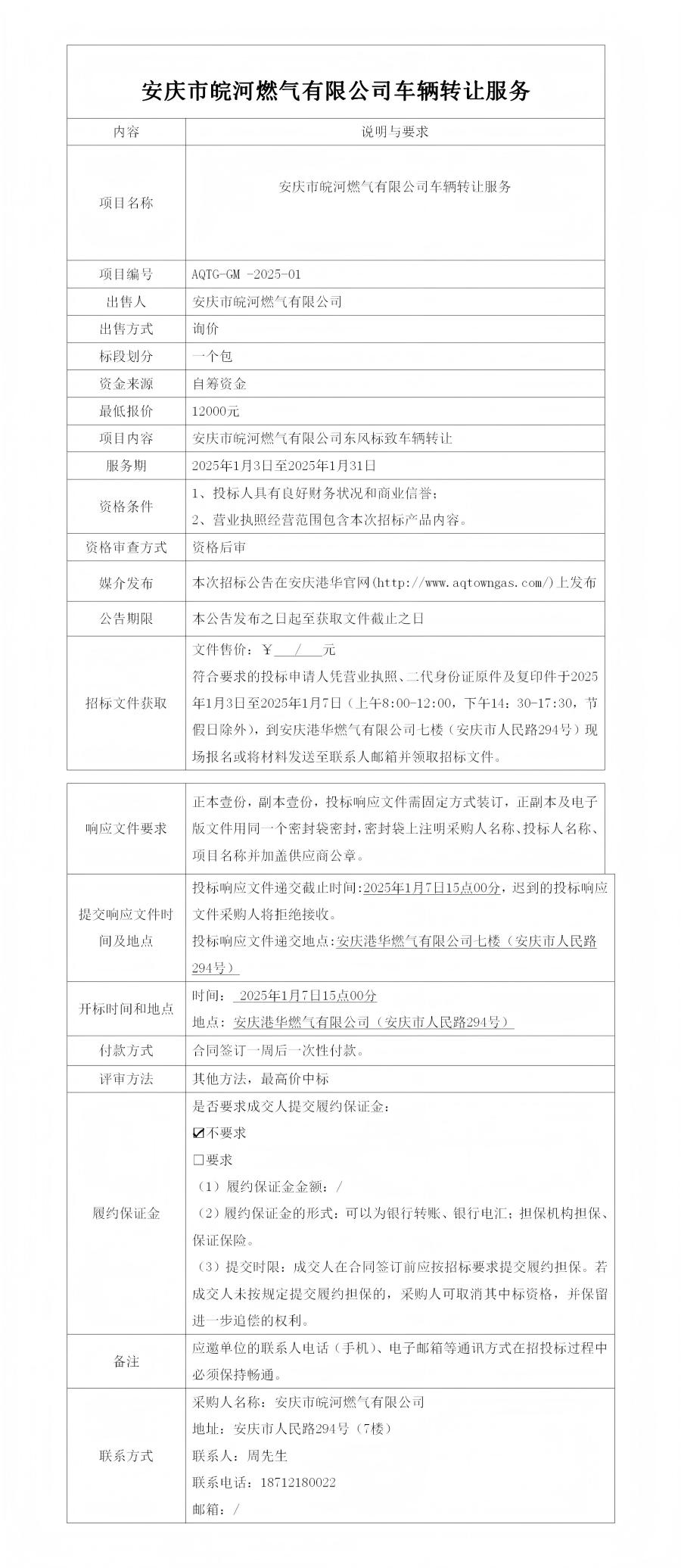 安慶市皖河燃?xì)庥邢薰拒囕v轉(zhuǎn)讓服務(wù)