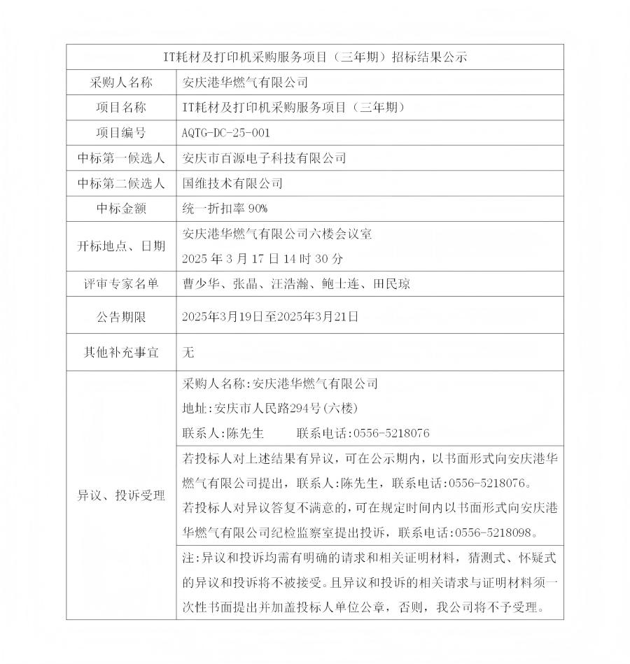 IT耗材及打印機采購服務(wù)項目(三年期)招標(biāo)結(jié)果公示