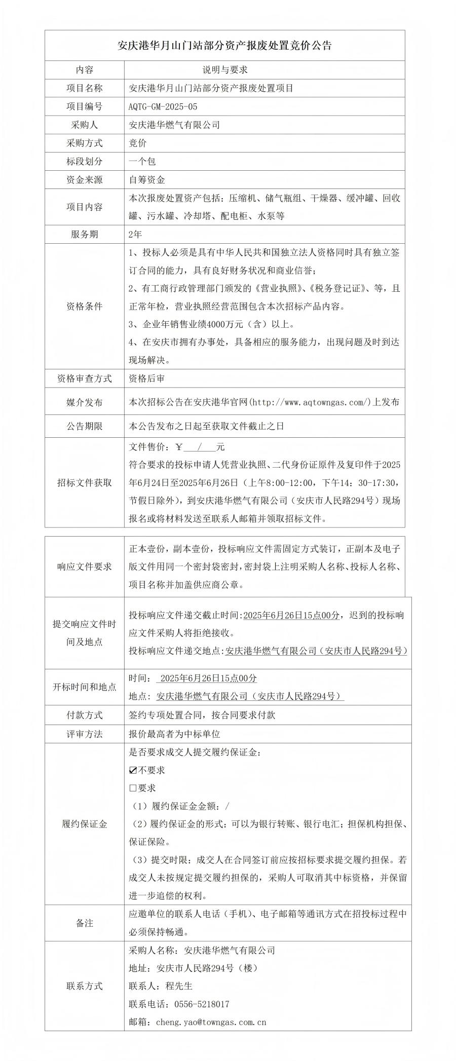 安慶港華月山門(mén)站部分資產(chǎn)報(bào)廢處置競(jìng)價(jià)公告