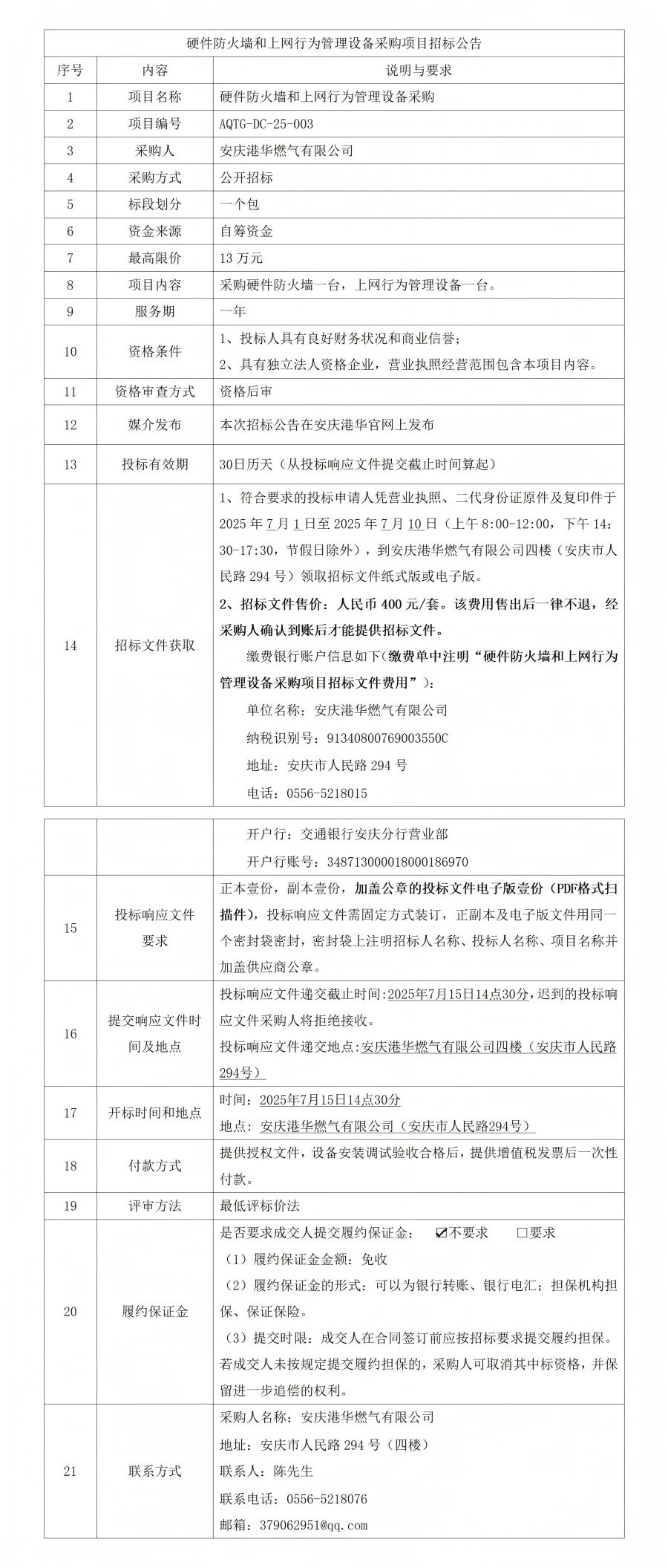 硬件防火墻和上網(wǎng)行為管理設(shè)備采購(gòu)項(xiàng)目招標(biāo)公告