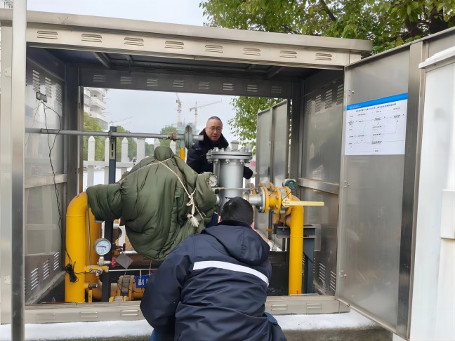 保障輸配勤維護(hù)。為保障低溫雨雪天氣下全市生產(chǎn)生活穩(wěn)定用氣,場站運(yùn)行工高頻次檢查各重要設(shè)備運(yùn)行情況,細(xì)致排查安全問題,一絲不茍確保關(guān)鍵環(huán)節(jié)處于良好運(yùn)行狀態(tài);巡線探漏人員頂風(fēng)冒雪,重點(diǎn)加大了人員密集區(qū)域及民生保障關(guān)鍵點(diǎn)的燃?xì)夤芫W(wǎng)巡查探漏,并對易受低溫影響的管道、閥井、調(diào)壓設(shè)備及時(shí)采取包裹棉被、排水等防凍措施。