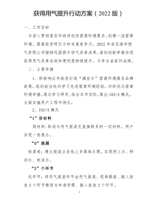 獲得用氣提升行動(dòng)方案(2022版)